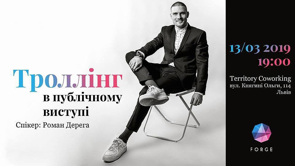 Forge events запрошує на подію на тему ораторського мистецтва. Роман Дерега розкаже про тактику опору троллінгу та провокаціям під час публічних виступів та спілкування з аудиторією.